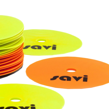 Set of 24 yellow and orange flat markers with a steel support.